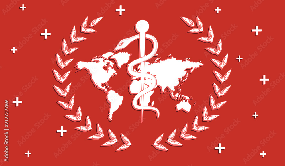 Healthcare Symbol Laurel Wreath World Map Staff And Snake Flat Style Vector Stock Vector Adobe Stock
